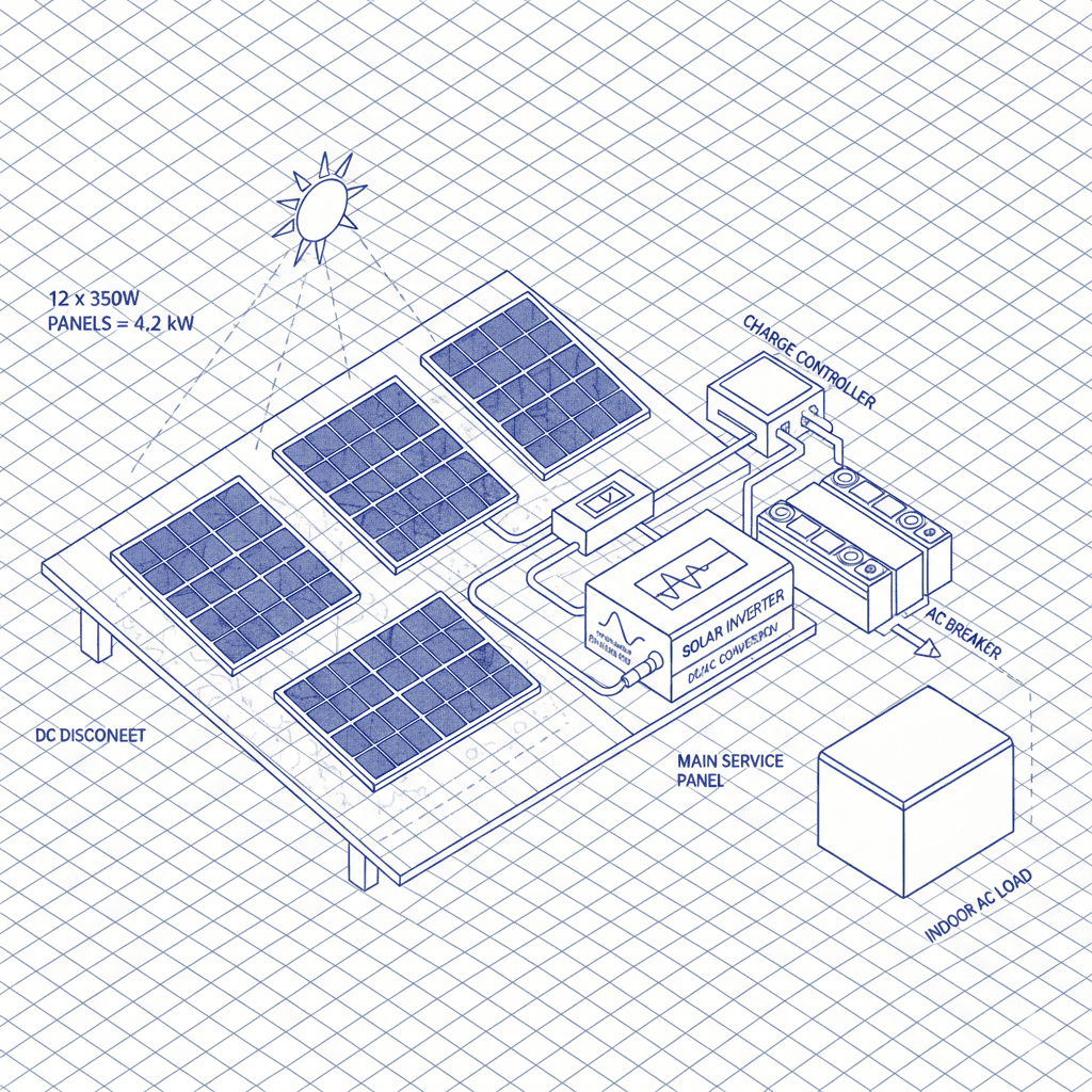- But batteries are expensive, and running heavy appliances like ACs requires a large battery bank.
